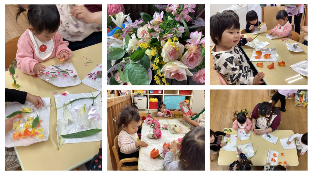 お花屋さんからいただいた生花を使って押し花アートを作成しました♪