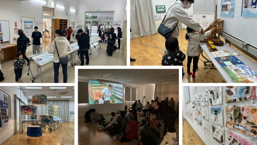 会場には、日常の活動の中で子どもたちが作り上げてきた絵画、灯篭、活動の様子を伝える多くの展示も並びました。発表だけでなく、園での毎日そのものを感じていただける空間となりました。